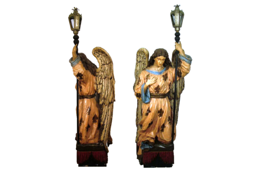 Os anjos tocheiros são esculturas profundamente elaboradas que datam do período Barroco. Criados para serem vistos por todos os ângulos, sua feitura é valorizada por um trabalho rico em detalhes e movimentos. Dentre os símbolos a eles associados estão o facho da fé, o mistério do tabernáculo e a luz que ilumina o caminho dos fiéis.